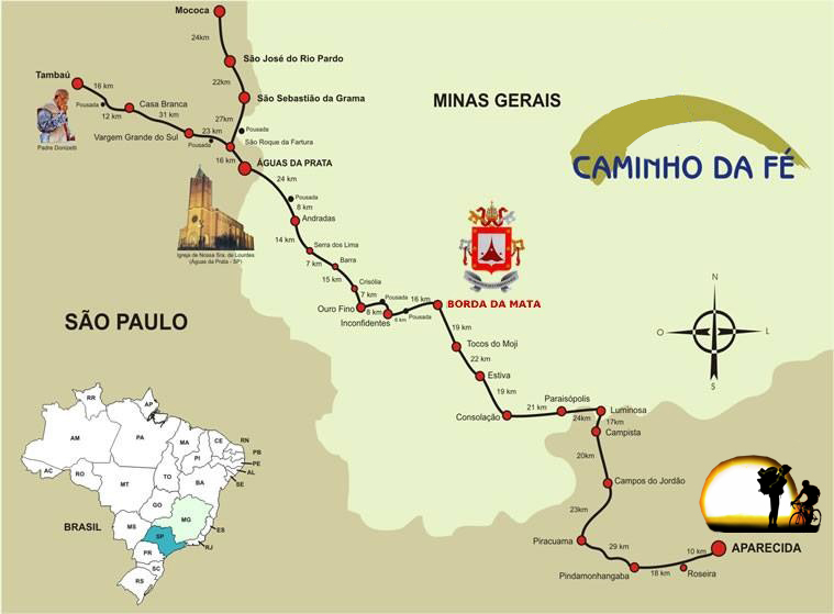 O Caminho da Fé é a mais famosa rota de peregrinação que temos, em nosso país. Inspirado no milenar 'Caminho de Santiago de Compostela', Espanha, foi criado para dar estrutura às pessoas que sempre fizeram peregrinação ao Santuário Nacional de Aparecida, oferecendo-lhes os necessários pontos de apoio.